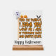 Capture the spirit of Halloween with this enchanting acrylic table sign, designed to bring a touch of festive magic to your home, office, or event. Crafted from premium, crystal-clear acrylic, this sign features intricately printed Halloween motifs—think grinning jack-o’-lanterns, fluttering bats, and swirling autumn leaves—rendered in vivid, fade-resistant colours that pop in any setting. Lightweight and sturdy, the sign stands upright on any flat surface, making it the perfect centerpiece for your dining table, entryway, or party display. Its smooth, polished edges and modern silhouette lend a sleek touch, while the playful, spooky design invites smiles and compliments from guests of all ages.