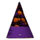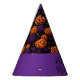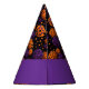 This party hat is shown in a Halloween colours of pumpkins print.