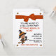 Cute children Halloween party invitation, with lovely graphics of a little girl witch and a big orange ribbon and bow. Customise all the text in font style, colour and size to suit your likes. Add more text fields if you desire.