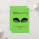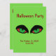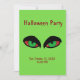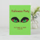 Vampire eyes are spooky. Bright green to match the eyes with blood red text RSVP information.