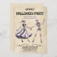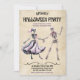 A spooky yet playful vintage-style Halloween invitation featuring skeletons dancing in eerie style. Perfect for Halloween parties with cocktails, music, and fun. Personalise easily with your party details.