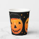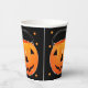 Creative Halloween party or dinner cups featuring colourful trick-or-treat vintage pumpkins on black background.