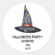 Halloween party custom sticker with witch hat. Easy to add custom text and background colour.