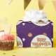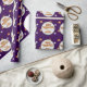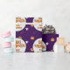 This spooky Halloween wrapping paper is decorated with funny pumpkins, ghosts, bats and scary eyes on a dark purple background imitating Halloween night.