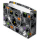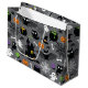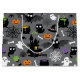 Funny Halloween pattern with bats, cats, spiders, ghosts, pumpkins, haunted house, lollipops.