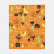 Cute and spooky orange pattern Halloween blanket or throw. Orange background with a colourful "Happy Halloween", pumpkin, ghost, witch, moon, black cat pattern. Perfect to keep you warm during the Halloween season!
