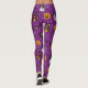 Halloween themed pattern in purple with ghost, bats, spiders, pumpkin and ghost house leggings.