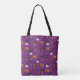 Halloween themed pattern in purple with ghost, bats, spiders, pumpkin, ghost house and many more.