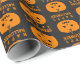 A Halloween wrapping paper with pumpkins and a 'Happy Halloween' text.