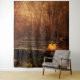 Halloween Photo Background Tapestry with pumpkins and bench in the woods.