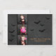 This Halloween card features a distressed black background with bats flying around and a three photo strip along the left and your personalised greeting to the right.
