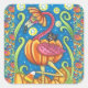 HALLOWEEN PINK FLAMINGO & BLACK CAT IN PUMPKIN SQUARE STICKER