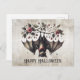 Halloween Pink Flowers Evil Bat Green Leaves Postcard