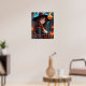 Poster is shown with a festive Halloween witch print.