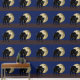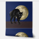 This Halloween classic looking vintage yet modern contemporary style art piece features a creamy golden yellow full harvest moon lighting up the deep royal blue night sky. In the foreground is a dark brown colour representing earthy dirt with a spooky black cat on the prowl above it for prey or other adventures.