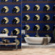 Peel And Stick Vinyl Wallpaper home decor accessory, wall art, wall cover and wall treatment product printed with a Halloween Prowling Black Cat On A Full Moon Night hand drawn graphic artwork drawing design illustration by TheFabricSeal print on demand shop at Zazzle.com #ZazzleMade ©️Original. https://www.zazzle.com/store/thefabricseal