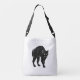 Cross Body Storage Tote Bag all over print style fashion statement accessory printed with a Halloween Prowling Black Cat Silhouette Drawing hand drawn graphic artwork drawing design illustration by TheFabricSeal print on demand shop at Zazzle.com #ZazzleMade ©️Original. https://www.zazzle.com/store/thefabricseal