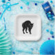 Square Paper Plates printed with a Halloween Prowling Black Cat Silhouette Drawing hand drawn graphic artwork drawing design illustration by TheFabricSeal print on demand shop at Zazzle.com #ZazzleMade ©️Original. https://www.zazzle.com/store/thefabricseal