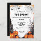 A spooky halloween 2nd birthday party invitation "Two Spooky with pumpkins and haunted houses, and a black reverse side. Easy to edit or delete the available text fields to personalise the information with your own details for a custom and professional looking invitation. Matching party items also available, please visit my shop to purchase.