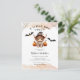 A little boo is almost due! This adorable baby shower postcard features Halloween cow with jack o' lanterns, flying bats and orange watercolor splashes.