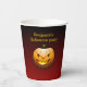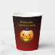 Fiery Halloween Pumpkin Face on a red Paper Cup.