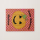 Non spooky grinning carved pumpkin face Halloween puzzle. Editable text on a pink polka dot background. See product safety warning for age suitability and choking hazards under "about this Product". See all size options.