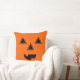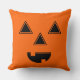 This festive Halloween throw pillow is shown in a black and orange pumpkin face print.