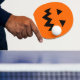 Scary Happy Halloween pumpkin head carving ping pong paddle. Funny orange and black carved pumpkin face design. Jack o lantern graphic. Cute idea for kids and adults.