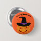 Halloween button pin shown with a pumpkin witch print.