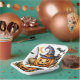 Ideal for serving spooky-themed food to guests, featuring pumpkins, bats, and broomsticks to enhance the evening.