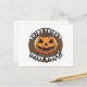 A cartoon-style illustration of a jack-o'-lantern pumpkin with a wide, toothy grin. The pumpkin is orange with a brown stem and is set against a brown background. The pumpkin's eyes and nose are carved out, creating a spooky expression. The text "Shine Bright Scare Right!" surrounds the pumpkin in a white, jagged font, adding to the festive and slightly menacing mood of the image.