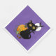 A cute little black cat with an orange pumpkin, bat, acorns and a full moon in a backdrop of purple