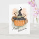 Celebrate Halloween with a touch of whimsy! This festive card features a cheerful pumpkin sporting a witch's hat, perfect for sending spooky wishes and Halloween cheer, and handwritten "Happy Halloween."