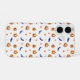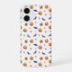 Festive Halloween phone case featuring pumpkins, bats, and candy corn in a playful repeating pattern. A fun and spooky design for the holiday season.