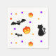 Halloween pumpkins, bats and black cat on white Napkins.