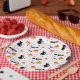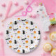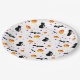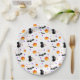 Halloween pumpkins, bats and cats on white Paper Plate.