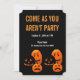Halloween Pumpkin graphics on this Come As You Aren't Party Invitation.