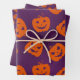 Halloween Pumpkins on Purple Background Pattern Wrapping Paper Sheet