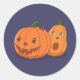 Halloween Pumpkins Pair on Purple Classic Round Sticker