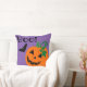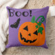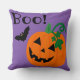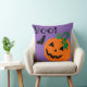 This Purple throw pillow with a charming funny orange jack-o'-lantern, a black bat and the text "Boo!" On the front is just the thing to bring a touch of Halloween into your home! Would be so much fun to have this pillow on a bench by the front door next to your matching Door Mat! Comes in square sizes only.