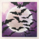 HALLOWEEN PURPLE SKY FULL MOON BLACK BATS GLASS COASTER