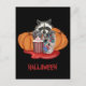 Halloween Racoon with skull and pumpkins Holiday Postcard