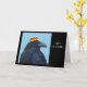 Painting of a raven with a candy corn crown on funny Halloween card