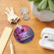 Halloween keychain with my original design of a raven sitting in a spooky tree with the full moon rising. Customizable text says "Happy Halloween!"