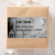 A custom label template with black grungy serif letters for your name and block letters for your custom address against a spooky Halloween sky with gothic ravens and moonlit clouds in black and white.