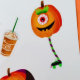 Look out! These jack-o'-lanterns are coming at you with spooky speed! 9 different Halloween jack-o'-lanterns are decked out in their frightfully fast roller skating gear accompanied by their favourite delicious roller rink snacks!
