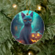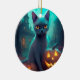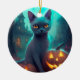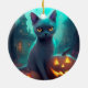Halloween Russian Blue Cat With Pumpkins Scary Ceramic Tree Decoration