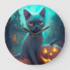 Halloween Russian Blue Cat With Pumpkins Scary Large Clock