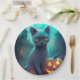 Halloween Russian Blue Cat With Pumpkins Scary Paper Plate