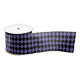 This satin ribbon is shown in a Halloween black and purple diamond pattern design.
